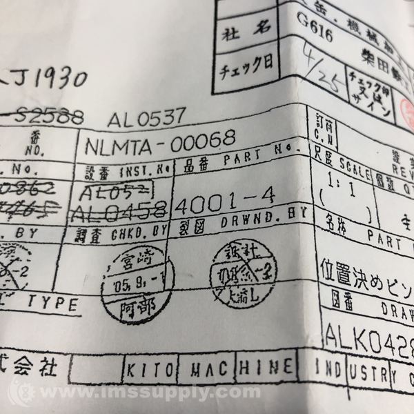 KITO MACHINE INDUSTRY CO LTD 4001-4 GUIDE PIN