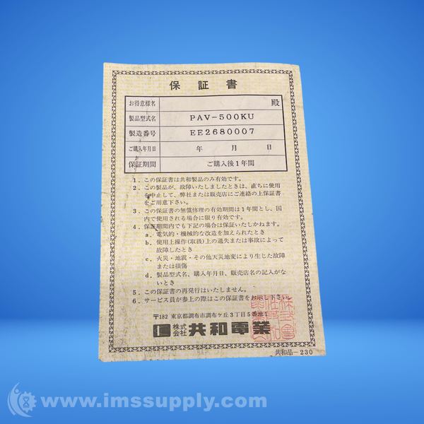 Manufacturer Part Number: PAV-500KU