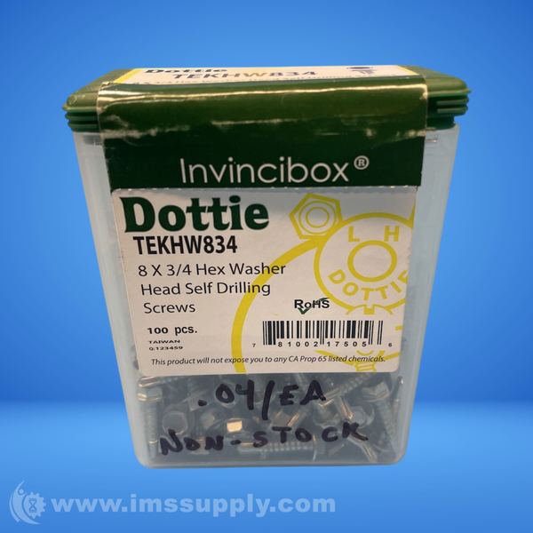 L.H. Dottie TEKHW834 Hex Head Self Drilling Screws 8 X 3/4 Case of 100