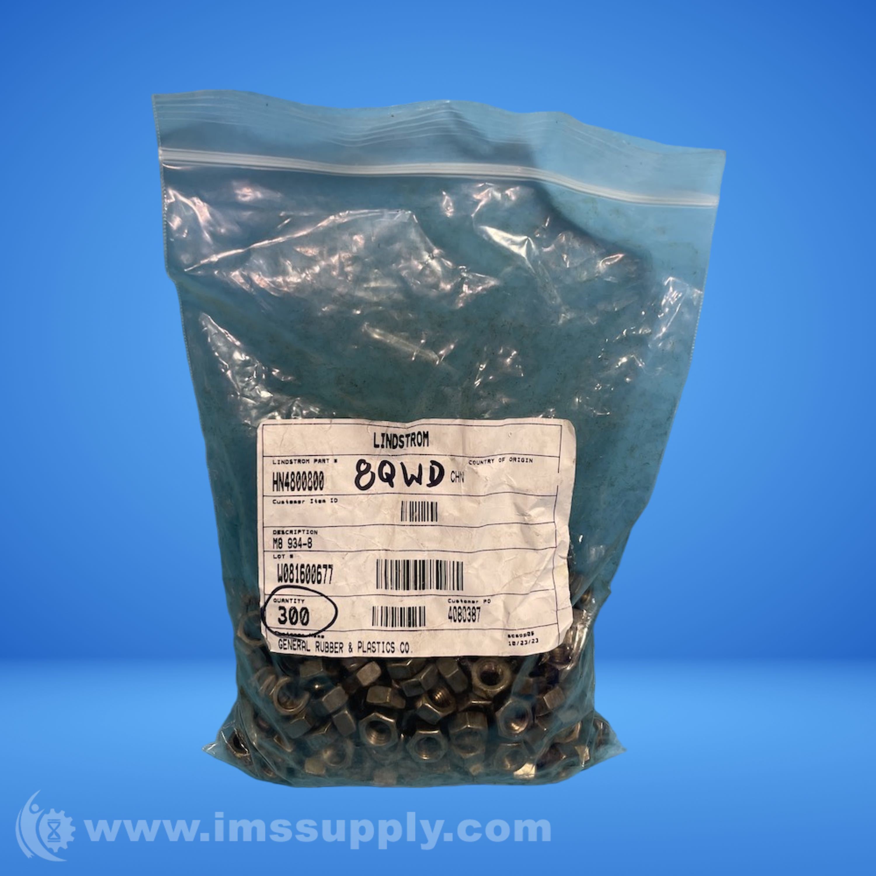 LINDSTROM HN4800800 STEEL HEX BOLT BAG OF 300