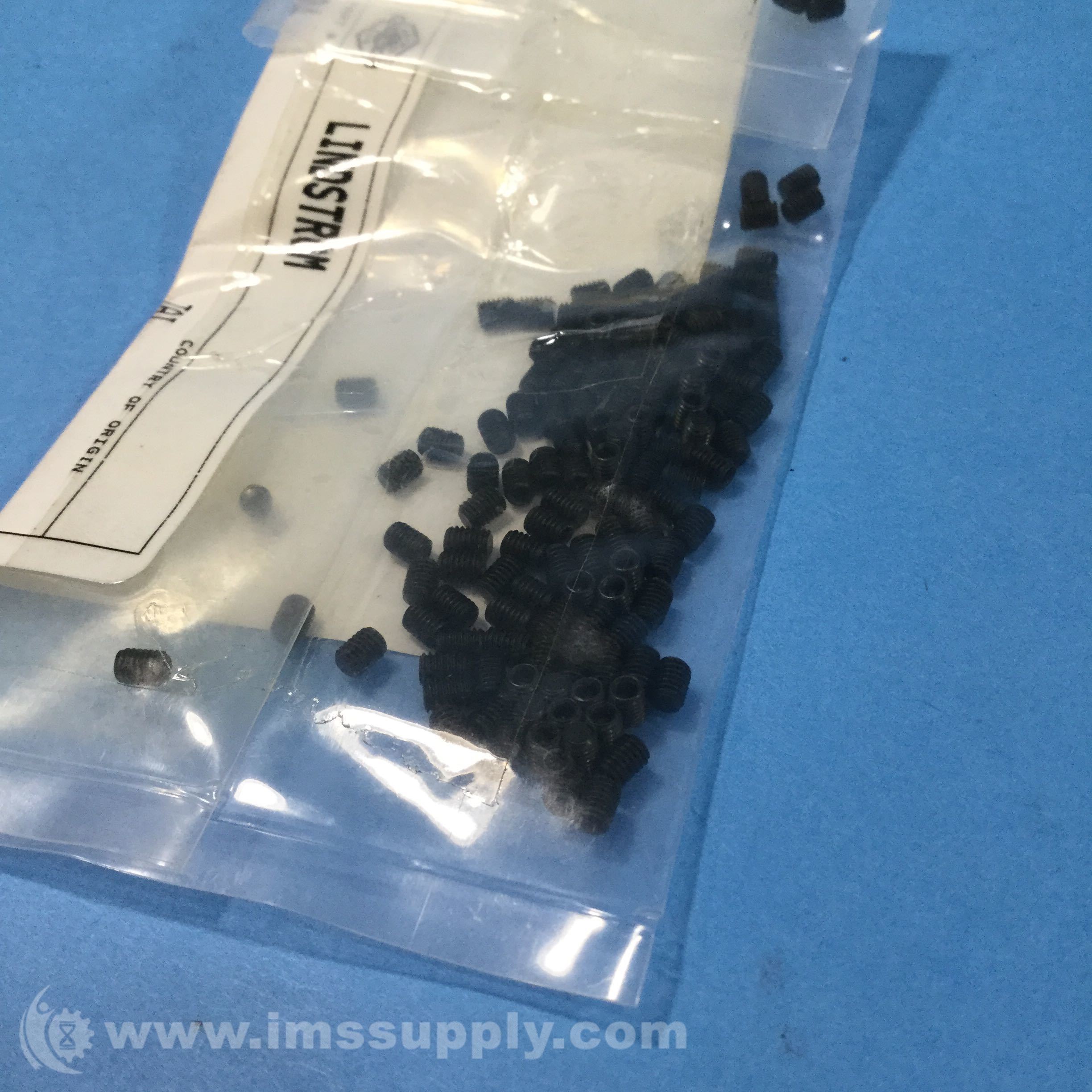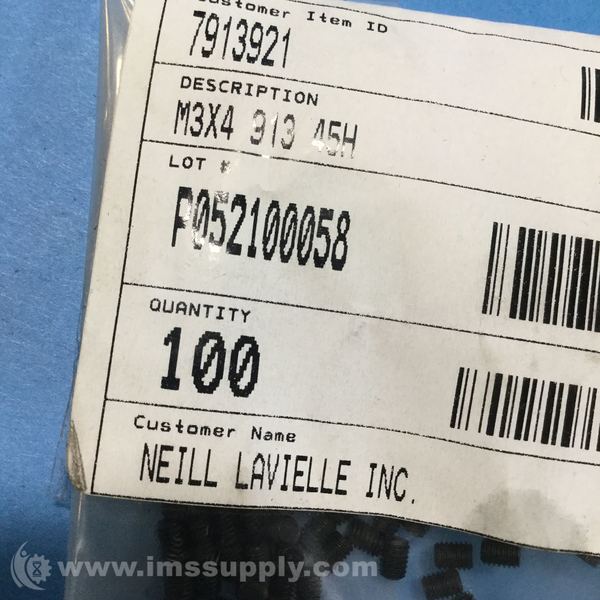 Metric screws manufactured by Lindstrom, part number M3X4 913 45H, packaged in quantities of 100