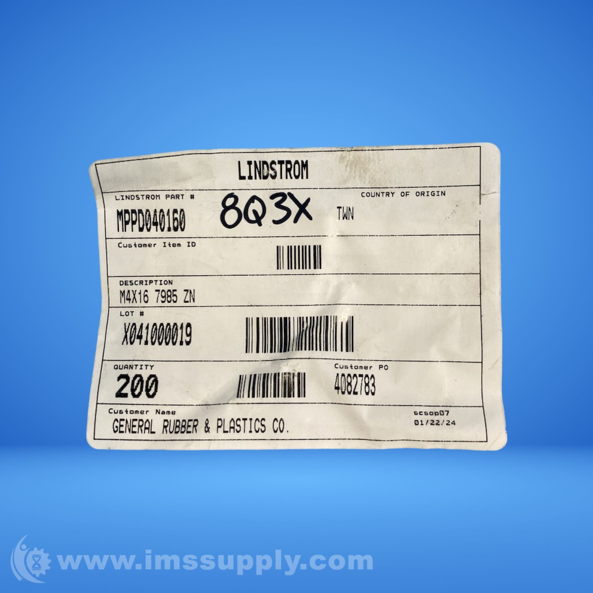 LINDSTROM MPPD040160 BAG OF 200