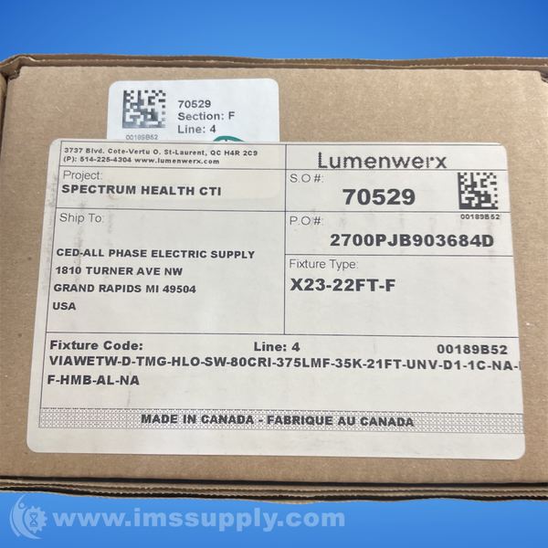 LED lighting fixture manufactured by Lumenwerx with part number X23-22FT-F, made in Canada