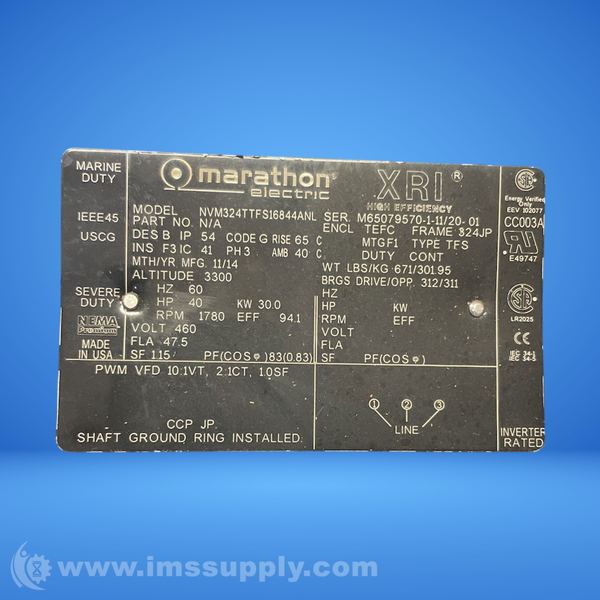 Marathon NVM324TTFS16844ANL 40 HP Electric Motor