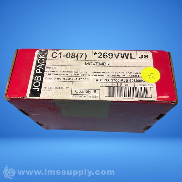 Industrial lighting component manufactured by Mark Architectural Lighting with part number C1-08(7) *269VWL, packaged in a job pack containing 8 units.