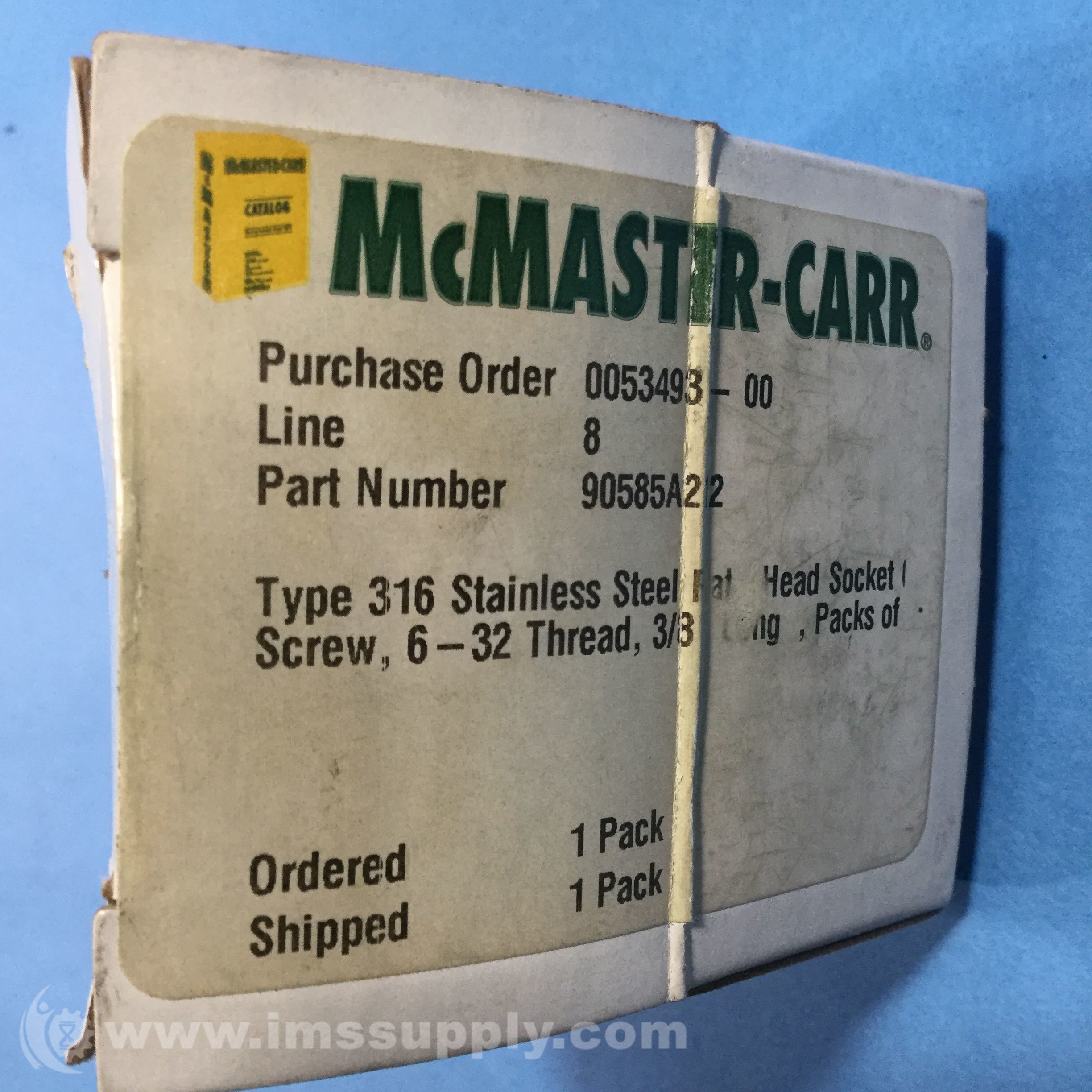 MCMASTER-CARR 90585A212 HEX DRIVE FLAT HEAD SCREWS, BOX OF 25