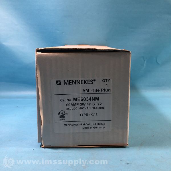 MENNEKES ME6034NM PIN & SLEEVE PLUG 60A 3W 4P 600VAC STY2