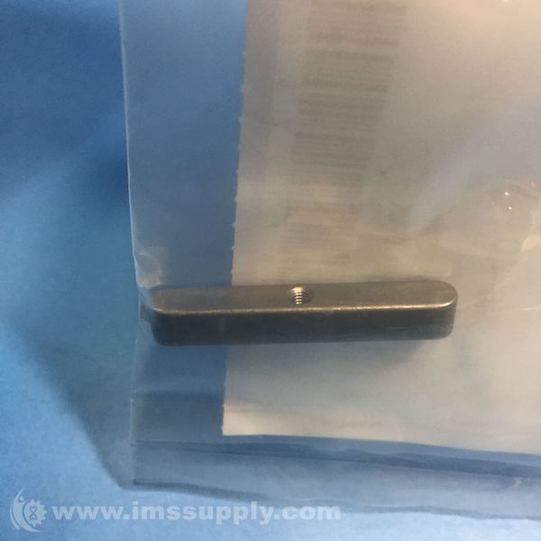A rectangular key with a threaded hole, packaged and labeled for industrial use