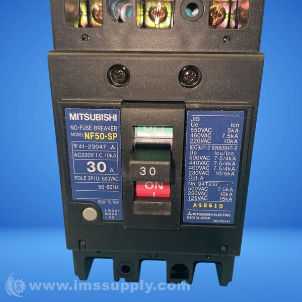 Mitsubishi NF50-SP 3-pole circuit breaker rated for 30A.