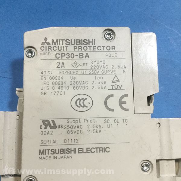 Mitsubishi CP30-BA 1 pole, 2 amp, Model CP30-BA Circuit Protector. Molded Case Circuit Breaker, Configuration 1 Pole 2 AmpsConfiguration 1 Pole 2 Amps