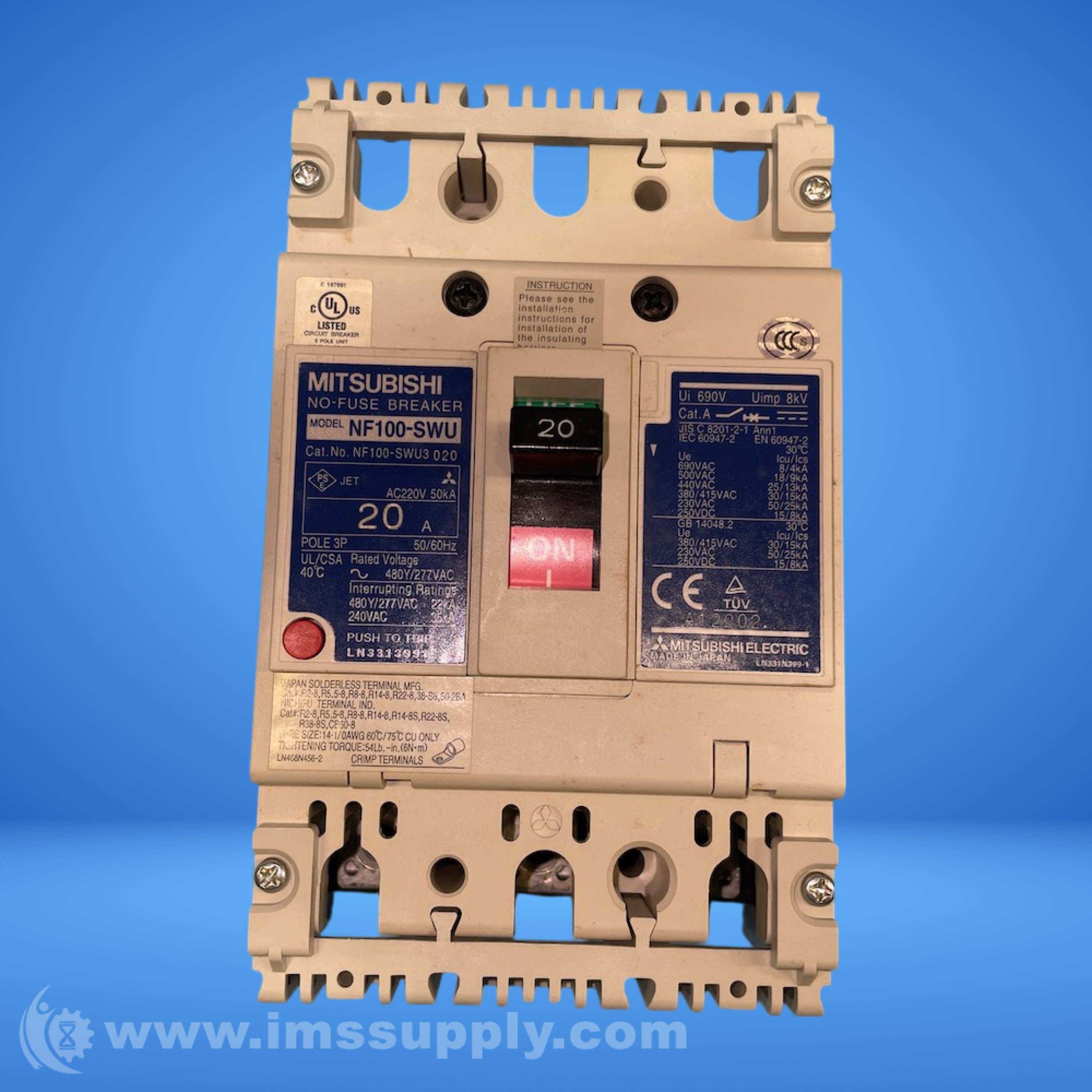MITSUBISHI NF100-SWU3020 3-POLE CIRCUIT BREAKER
