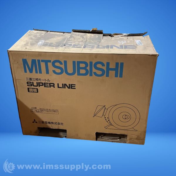 Three-phase induction motor from Mitsubishi's Super Line series, rated at 11 kW with 4 poles. Constructed with steel components and designed for indoor use.