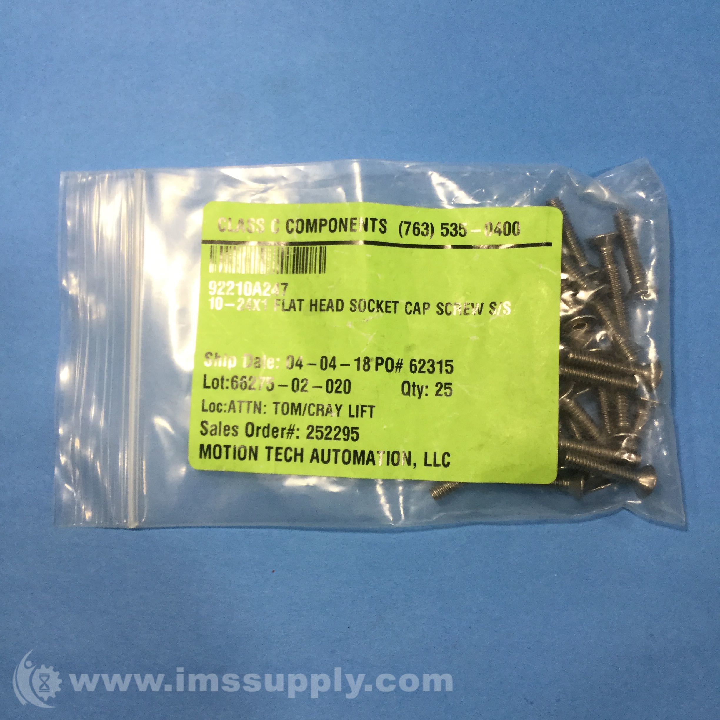 MOTION TECH AUTOMATION 92210A247 10-24X1 SCREWS, BAG OF 25
