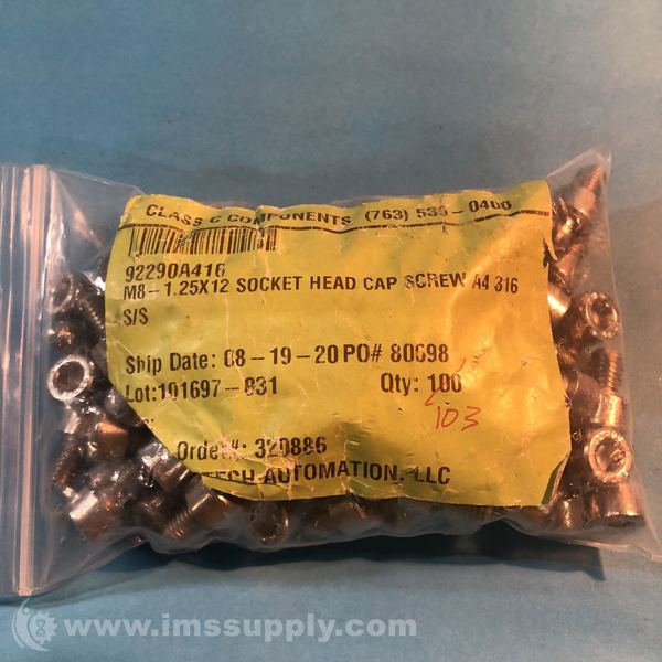 MTA Automation 92290A416 Box of 100 M8-1.25x12 Socket Head Cap Screws A4 316 S/S