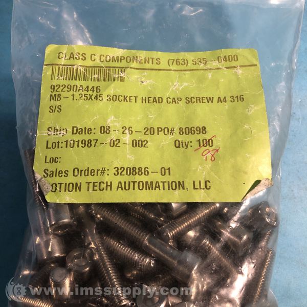 MTA AUTOMATION 92290A446 BAG OF 100 SOCKET HEAD CAP SCREWS