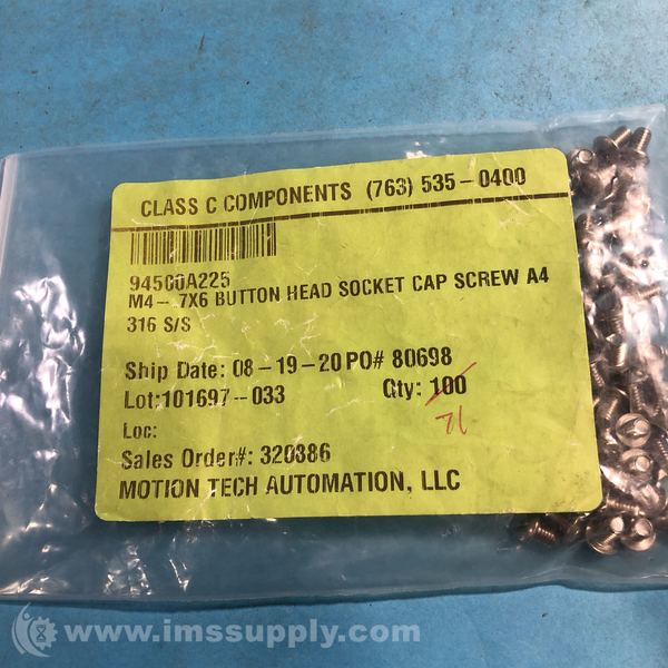 MTA AUTOMATION 94500A225 BAG OF 100 BUTTON HEAD HEX DRIVE SCREWS