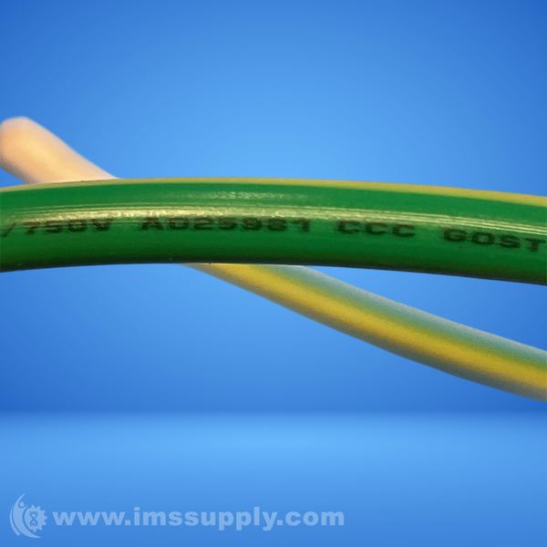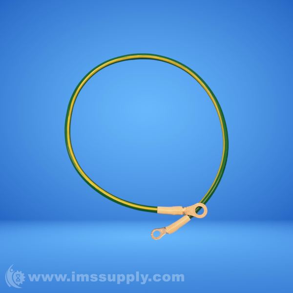 A grounding wire with visible product identification and specifications.