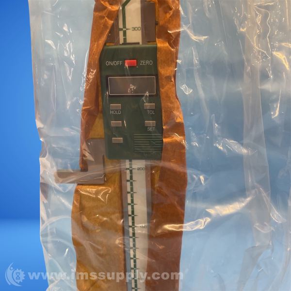 Digital height gauge with 300mm measurement range and 0.01mm resolution. Includes holder arm, scriber, and SR44 battery.