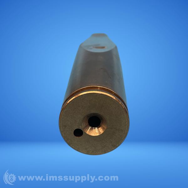Industrial nozzle assembly with cylindrical design, tapered tip, and dual orifice configuration.