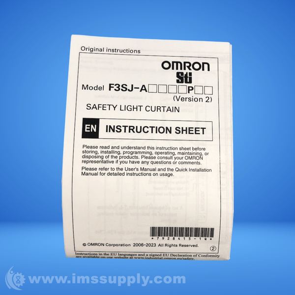 Omron F3SJ-A Safety Light Curtain Instruction Sheets