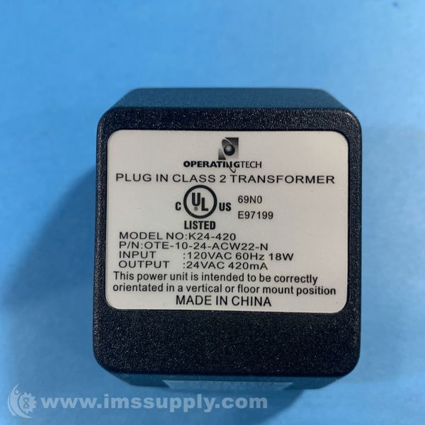 Operating Tech Electronics Inc OTE-10-24-ACW22-N Transformer; 120vac 60hz 18w Input; 24vac 420ma Output; Model K24-420