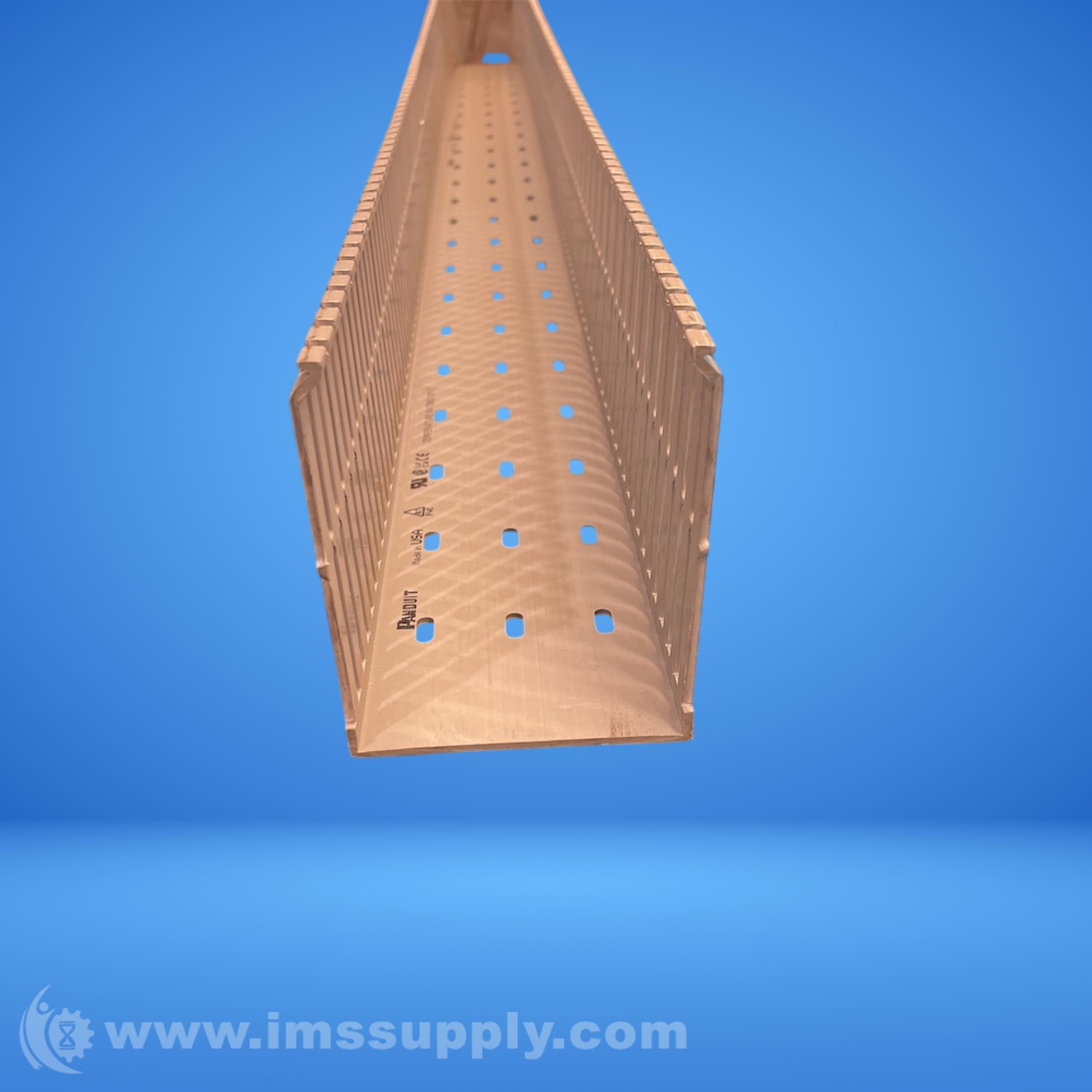 Panduit Type F narrow slot wiring duct, 3 in. w x 4 in. h, 6 ft. long, made of Lead-Free PVC.