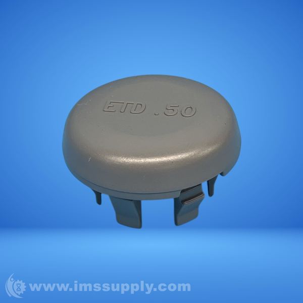 Non-conductive knockout filler for 1/2" knockout holes, fits wall thicknesses from 1/32" to 1/8", made of gray plastic.