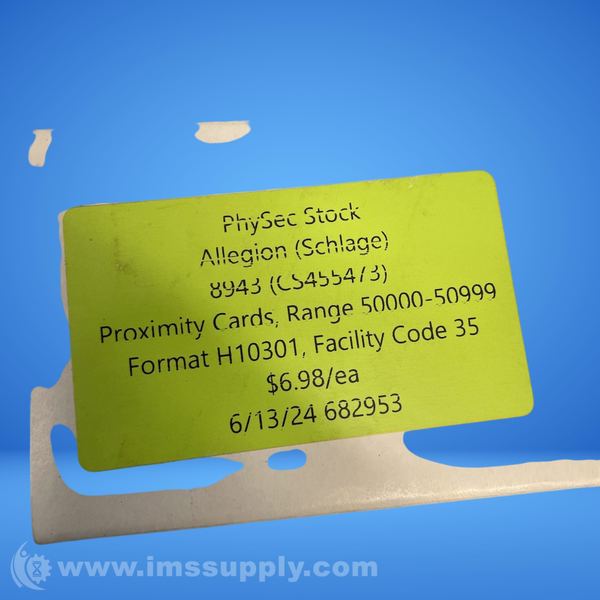 Schlage CS455473 MIFARE Desfire Proximity Cards, Configuration 50000 - 50249, Box of 250