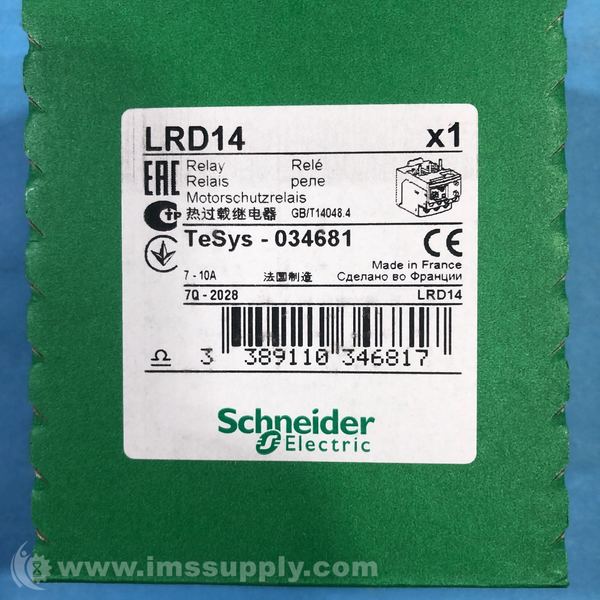 Schneider Electric LRD14 Overload Relay, Class 10, 7-10A, TeSys LRD Series