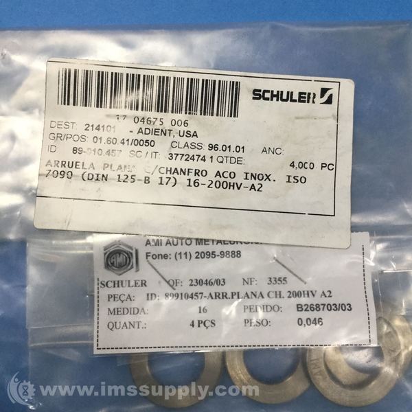 SCHULER INC 89-910.457 FLAT WASHER W/ CHAMFER, 16MM, BAG OF 4