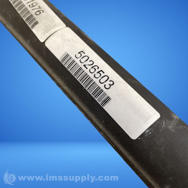 Tapered tube with threaded end and barcode label indicating part number 5026503