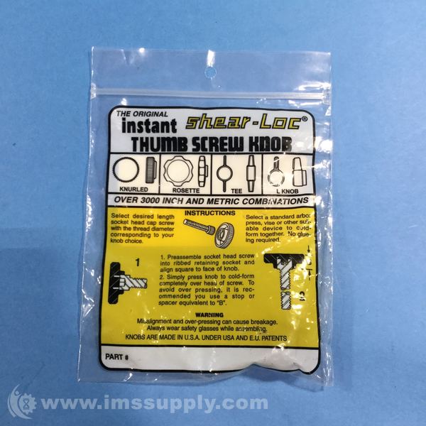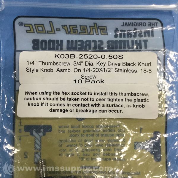 SHEAR-LOC K03B-2520-0.50S THUMB SCREW KNOB, BAG OF 10