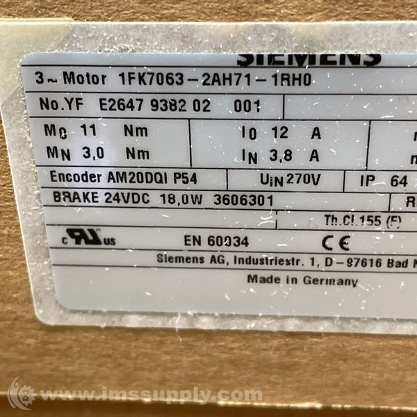 Manufacturer Part Number: 1FK7063-2AH71-1RH0