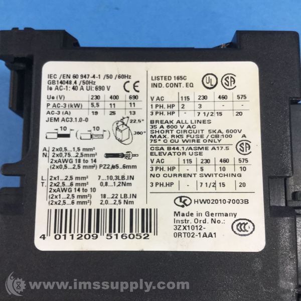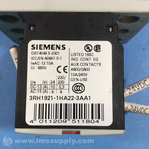 Additional Siemens part numbers 3RH1921-1HA22-3AA1 and 3RT1926-1ER00 attached to unit