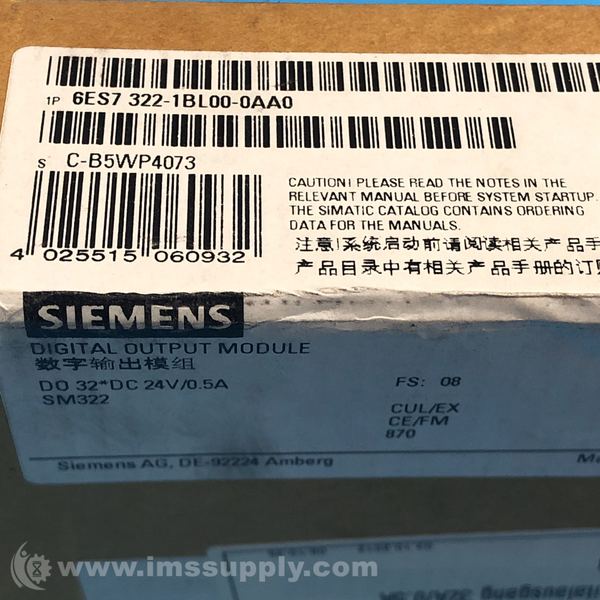 Manufacturer Part Number: 6ES7 322-1BL00-0AA0