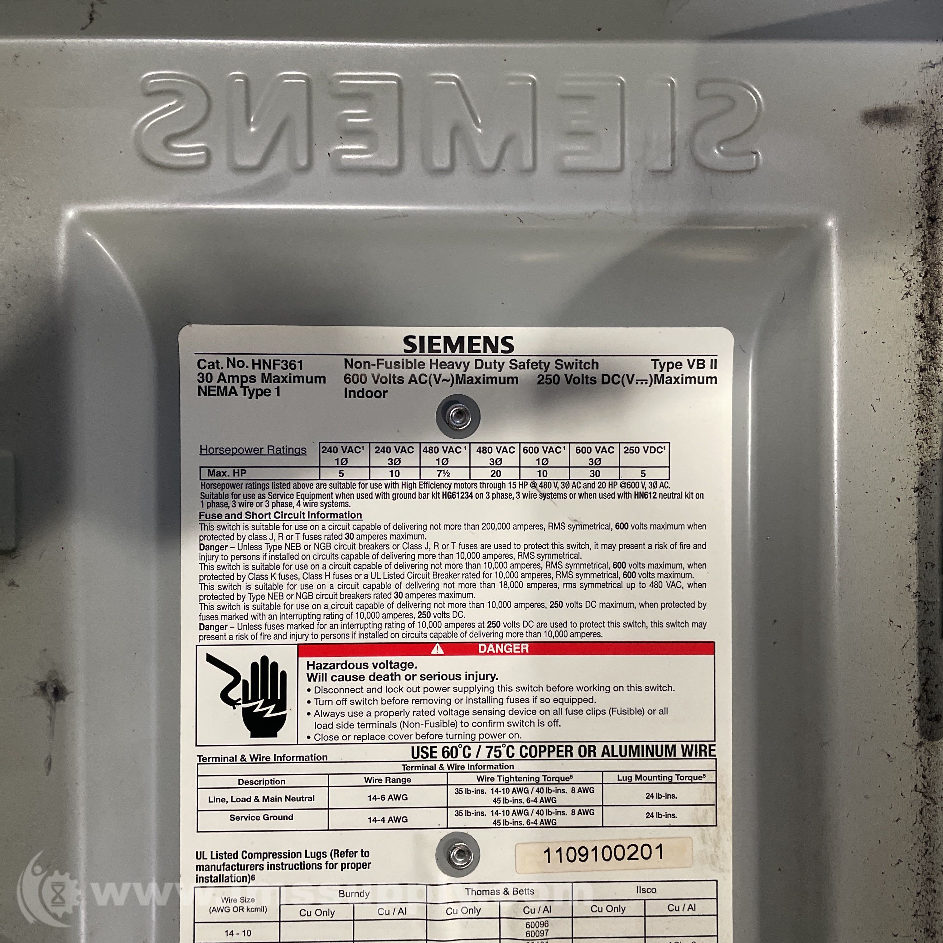 SIEMENS HNF361 SAFETY SWITCH