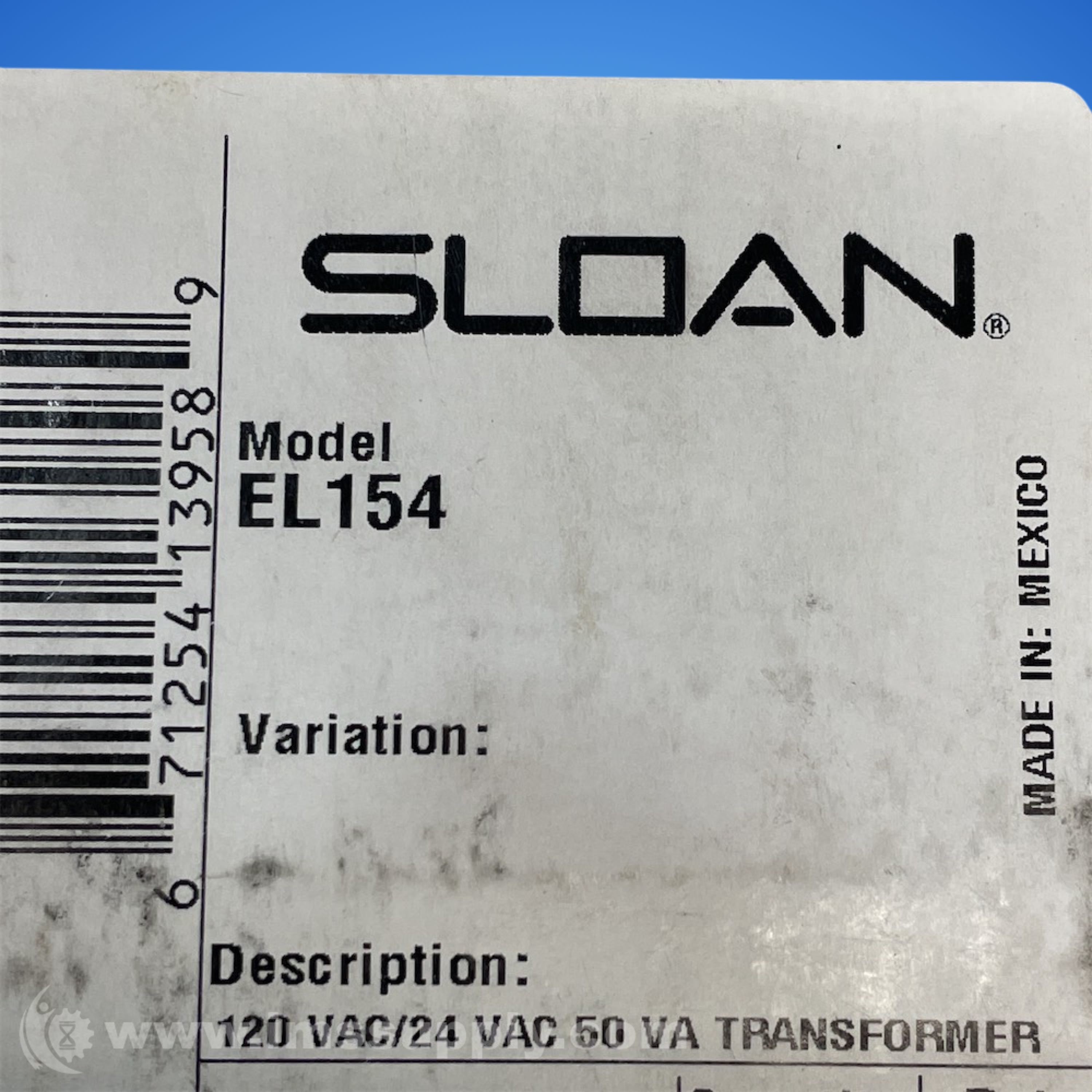 SLOAN EL154 TRANSFORMER 24V AC