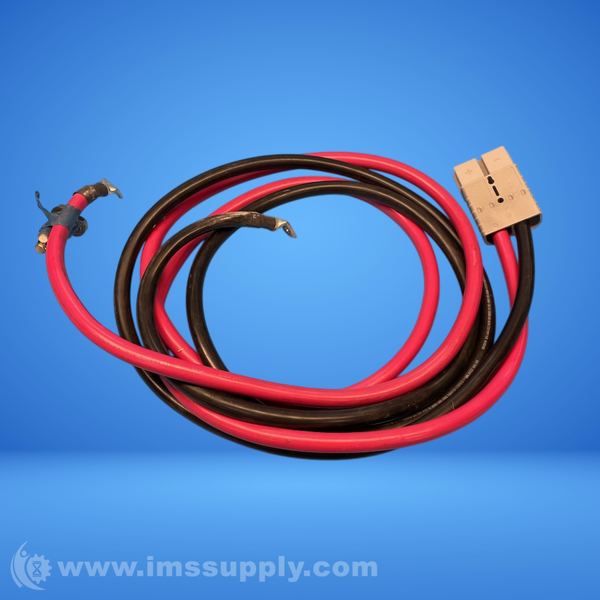 A cable assembly with red and black wires.