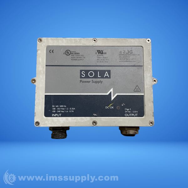 Sola SCP-100S24X-DVN is a DC power supply with a switcher design, operating at 100-240VAC input and providing 24VDC output at 3.8A. It features a chassis mount, IP66/67 rating, and operates in temperatures from -40 to 60 degrees C.