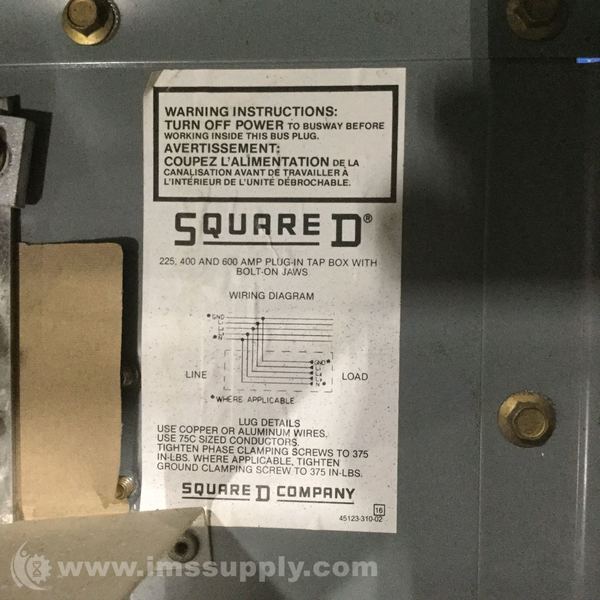 SQUARE D 225, 400 AND 600 AMP PLUG IN TAP BOX