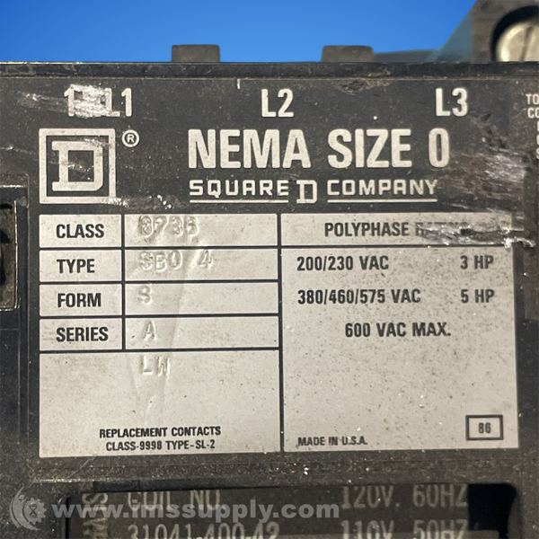 Square D 8736SB04 Series A Starter, Type S, Reversing