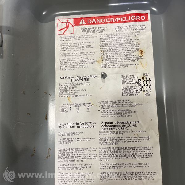 SQUARE D H323NRB 100A 240V 3P FUSIBLE SAFETY SWITCH
