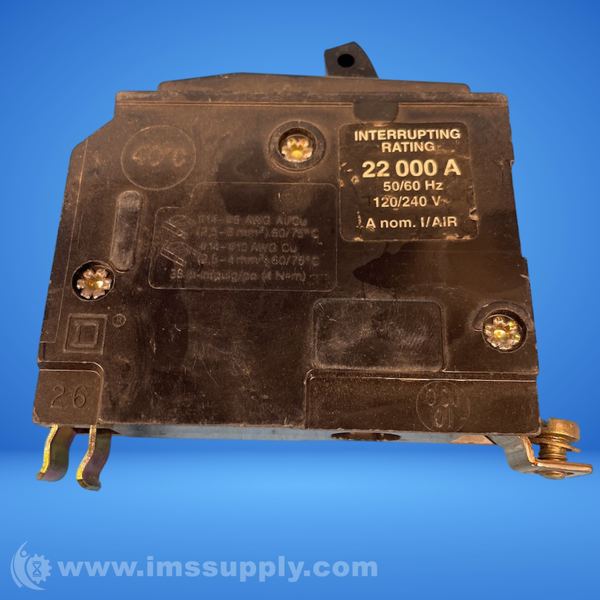 A Square D circuit breaker designed for electrical circuit protection, featuring a specific interrupting rating and compatibility with various electrical systems.