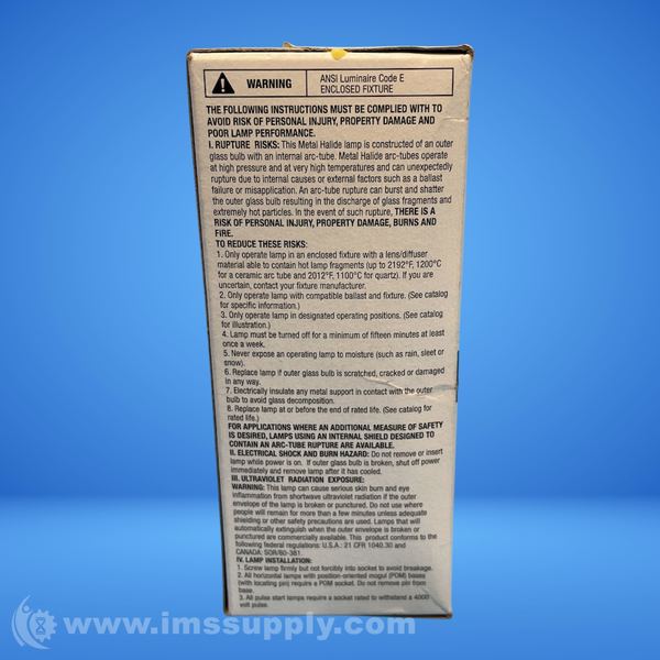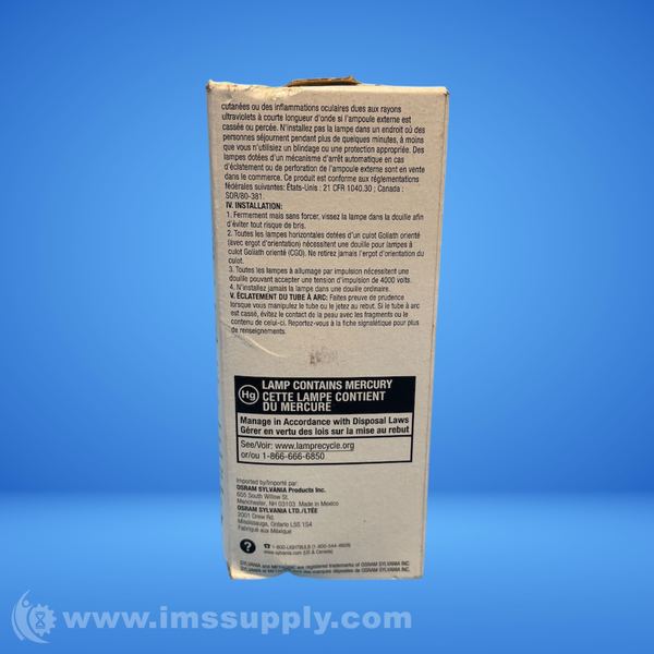 Metal halide lamp containing mercury, made in Mexico by OSRAM SYLVANIA Products Inc.