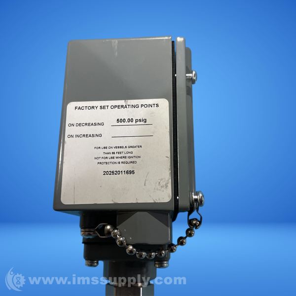 Electromechanical pressure switch with fixed scale, 1 threshold, 20 to 1000 PSIG range.