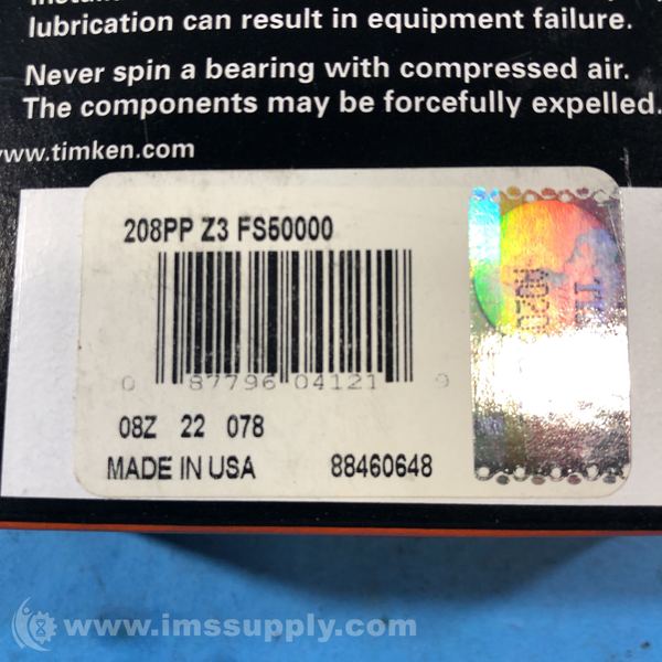 Manufactured By: TIMKEN
