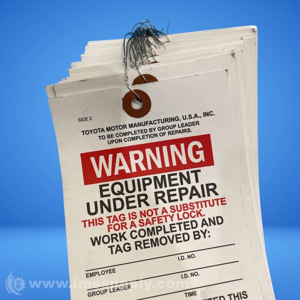 Industrial warning tag indicating equipment is under repair, manufactured by TOYOTA MOTOR CORPORATION