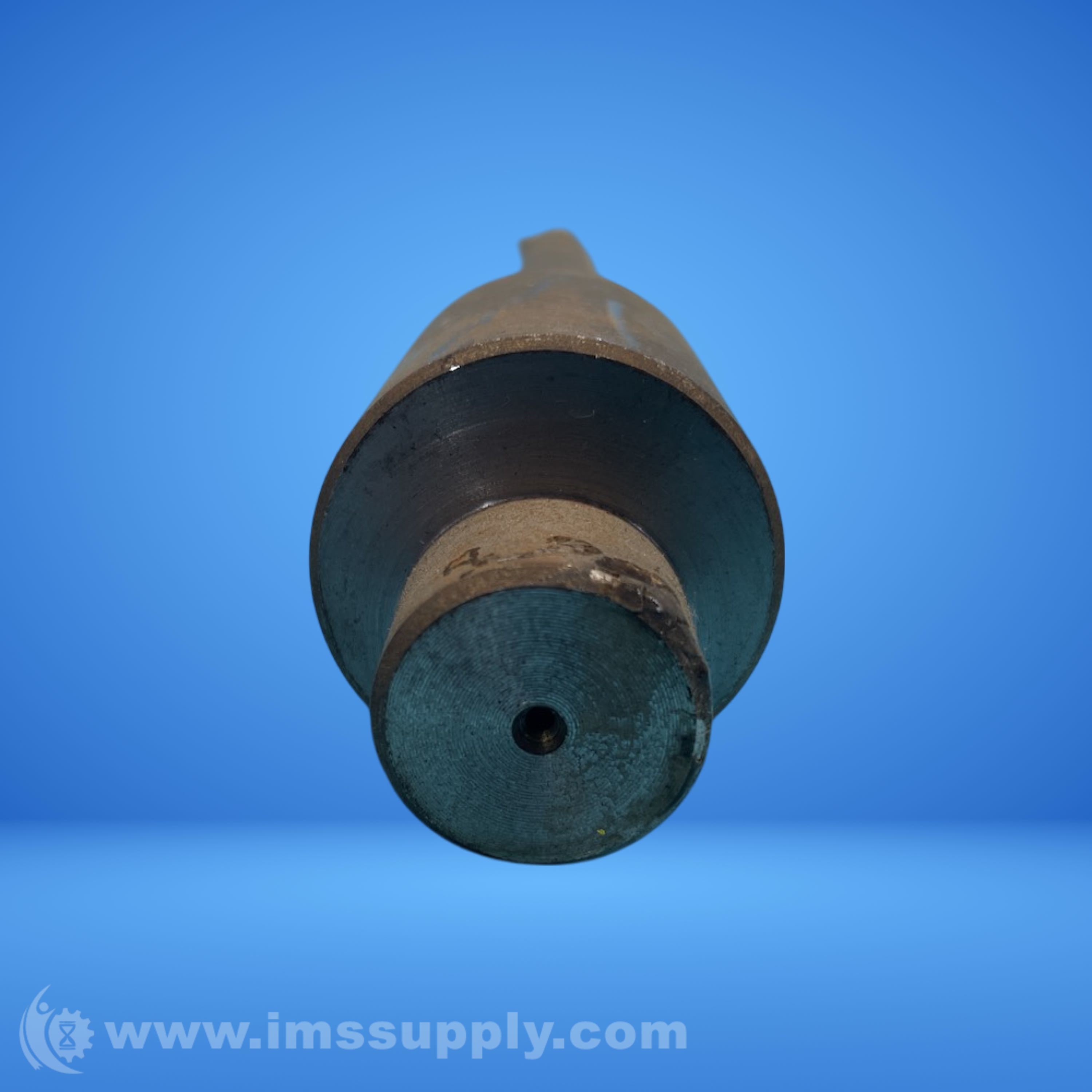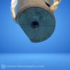 Industrial percussion device with cylindrical body and weighted end, featuring a central hole and potential fuze or ignition mechanism.