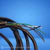 Industrial cable assembly featuring a 5-pin connector at one end and multiple insulated wires at the other