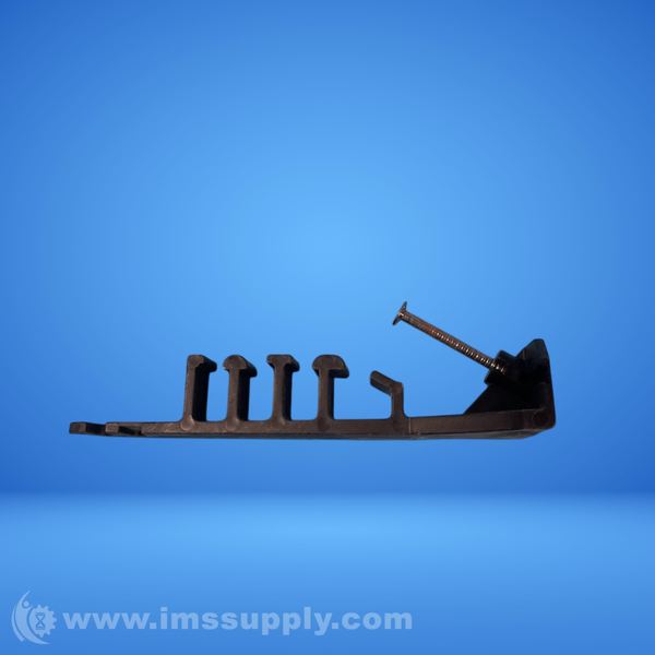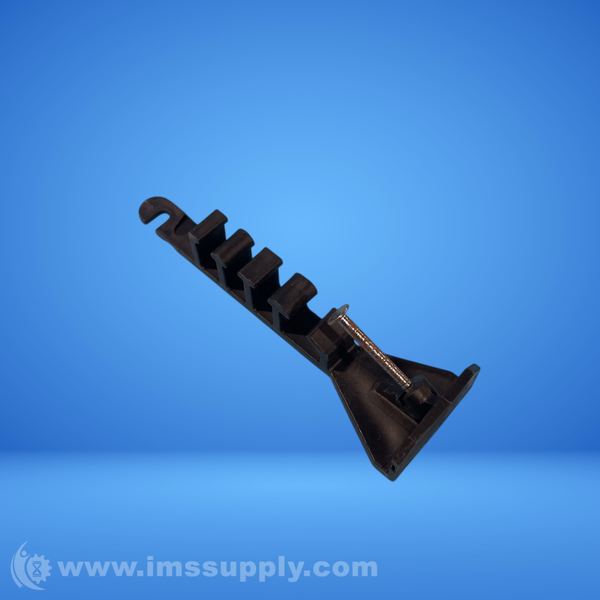 A plastic cable tie mount with a screw for wall mounting and multiple hooks for cable management